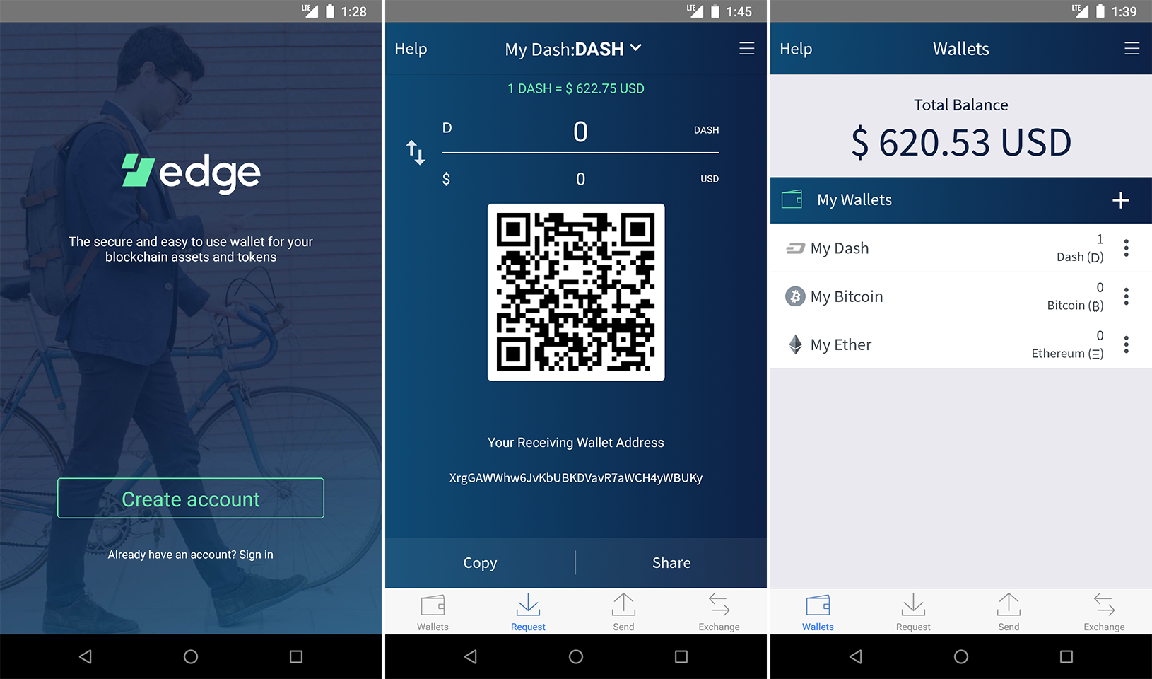 Third Party Wallets# These wallets have been developed by external developers to support Dash. Many third party wallets support multiple different cryptocurrencies at the same time, or integrate instant cryptocurrency exchanges. Introduction ADAMANT Channels Cobo Coin Wallet Coinomi Edge Ethos Exodus Guarda Huobi Wallet Mobi Ownbit Trust Unstoppable VegaWallet ZelCore Edge Wallet#